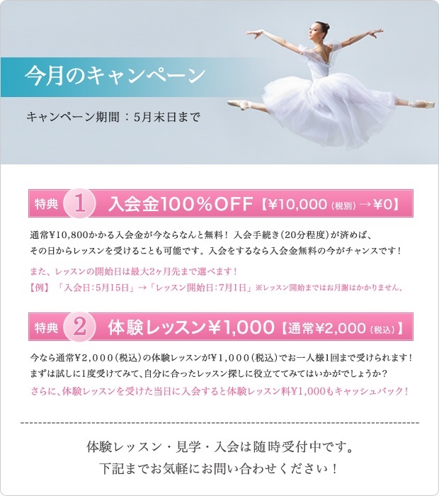 今月のキャンペンは入会金0円ですので、これから始めようと検討されている方は是非!今月中にお越しください♡