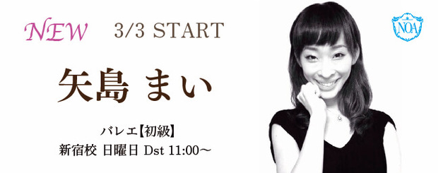 3/3(日)より新宿校Dst11:00〜矢島まい先生のバレエ初級クラス始まりました!