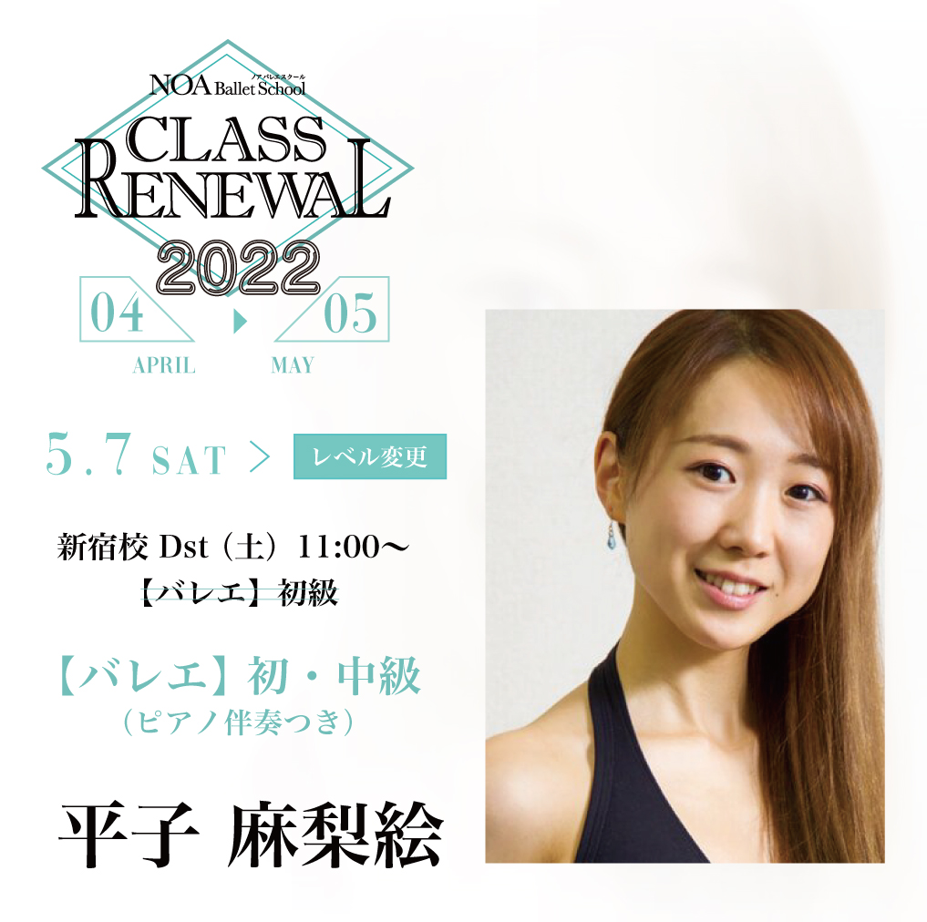 05.01Sun / 2022 バレエ初中級 平子麻梨絵 NOTE 5月7日(土)から平子麻梨絵先生の土曜11:00~のレッスンレベルが バレエ初・中級に変更になります。 先生のプロフィールはこちらから☆ 前のページに戻る SCHOOL スクール別のブログです。 新宿校 都立大校 池袋校 秋葉原校 恵比寿校 赤坂校 自由が丘校 御茶ノ水校 中野校 吉祥寺校