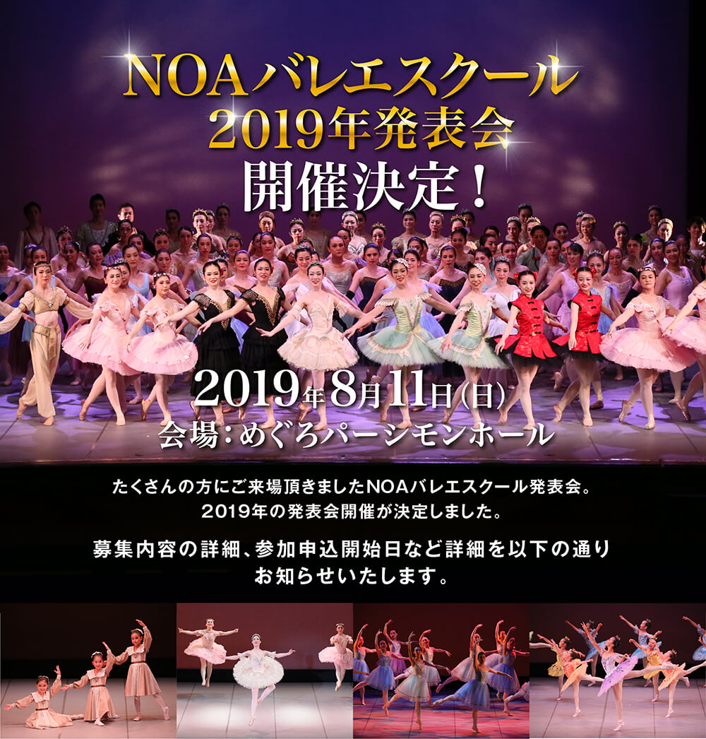 【出演者募集】NOAバレエスクール2019年発表会開催決定!2019年8月11日(日) めぐろパーシモンホールにて開催いたします。